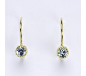 Zlaté náušnice ze žlutého zlata se syntetickým akvamarínem. Celková výška náušnice 16 mm. Materiál je žluté zlato 14 karátů 585/1000. Orientační váha náušnic je 1,46 g.