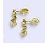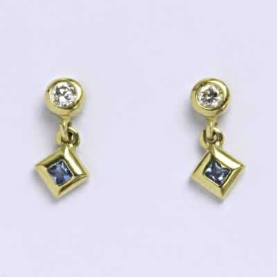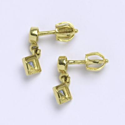 Náušnice vyrobené ze žlutého zlata 585/1000 osazeny syntetickým akvamarínem a zirkonem. Zapínání na náušnicích je šroubek. Velikost náušnice je 13 mm. Při více kusech skladem, je váha jen orientační.