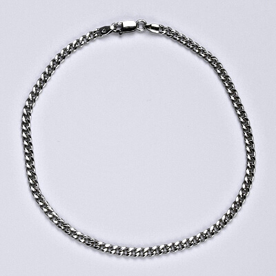 Zlatý náramek vyrobený z bílého zlata. Délka náramku je 20,5 cm. Materiál je zlato 14 karátů 585/1000.