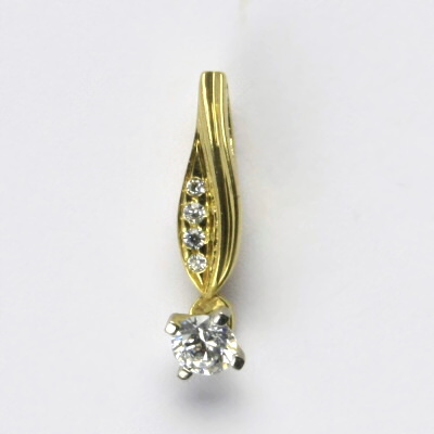Přívěsek je vyrobený ze žlutého zlata o ryzosti 14 karátů 585/1000. Přívěšek je zdoben čirými zirkony. Orientační váha přívěsku je 1,46 g. Celková výška přívěsku včetně očka je 20 mm.