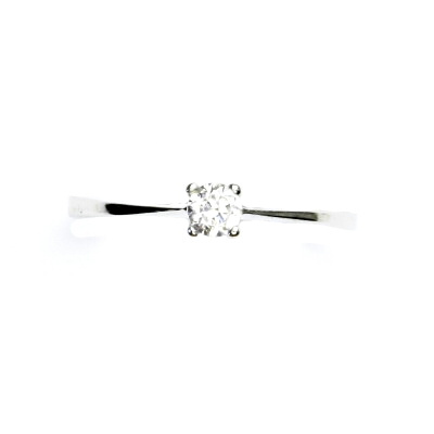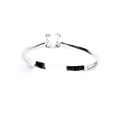 Prstýnek z bílého zlata je zdoben čirým zirkonem o průměru cca 3,5 mm. Materiál je zlato 585/1000. Orientační váha prstenu ve velikosti 54 je 1,06 g. Prstýnek je vhodný i jako zásnubní.