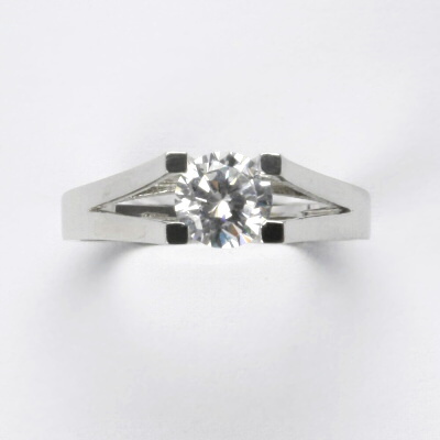 Prsten je vyrobený z bíloho zlata. Prsten je zdoben syntetickým zirkonem. Materiál je zlato o ryzosti 14 karátů 585/1000. Orientační váha prstenu je 3,32 g. Prsten máme skladem ve velikosti 56. Průměr zirkonu je 6 mm.