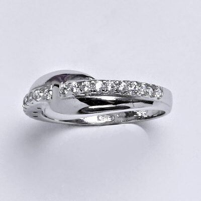 Prstýnek je vyrobený z bílého zlata 14 karátů 585/1000. Prstýnek je osazený syntetickými zirkony.