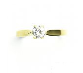 Prstýnek ze žlutého zlata je zdoben čirým zirkonem o průměru 5 mm. Materiál je zlato 585/1000. Orientační váha prstenu ve velikosti 55 je 2,80 g. Prstýnek je vhodný i jako zásnubní.