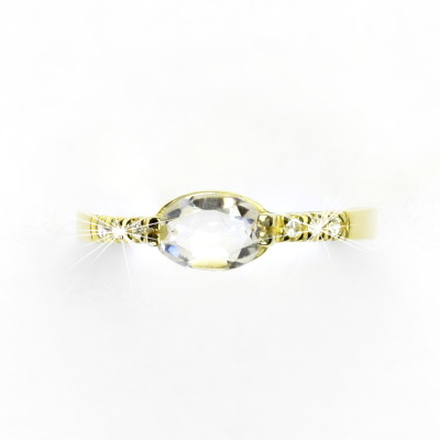 Zlatý prsten s čirými zirkony o průměru 1,30 mm a oválným zirkonem 7x5 mm. Materiál je zlato 585/1000. Orientační váha prstenu ve velikosti 54 je 1,90 g. Prstýnek nabízíme v různých velikostech.
