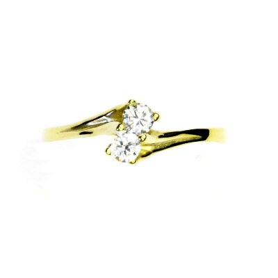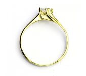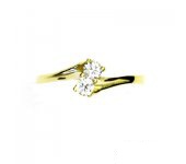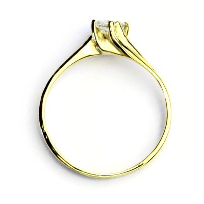 Prstýnek ze žlutého zlata je zdoben dvěma čirými zirkony o průměru 3 mm. Materiál je zlato 585/1000. Orientační váha prstenu ve velikosti 54 je 1,94 g.