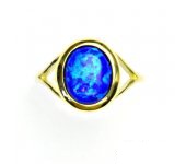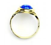 Prstýnek z bílého zlata je zdoben tmavě modrým syntetickým opálem o rozměru 10x8 mm. Materiál je zlato 585/1000. Orientační váha prstenu ve velikosti 53 je 3 g.