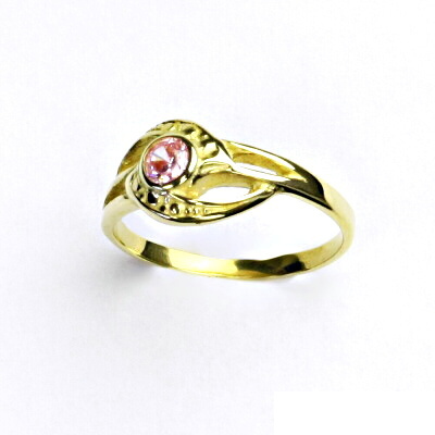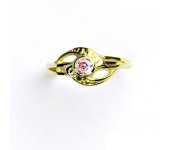 Prstýnek ze žlutého zlata je zdoben růžovým zirkonem o průměru 4 mm. Materiál je zlato 585/1000. Rozměr zdobné části prstenu je 8,5x10 mm. Orientační váha prstenu ve velikosti 54 je 2,48 g.