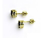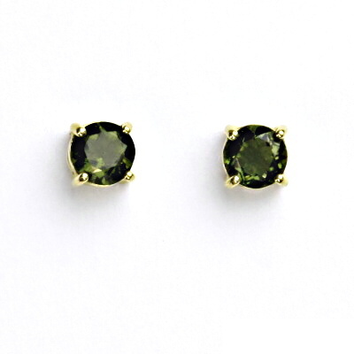 Zlaté náušnice ze žlutého zlata s přírodním vltavínem o průměru 6 mm. Materiál je zlato 585/1000. Orientační váha náušnic je 1,76 g. Náušnice mají zapínání na šroubek.