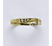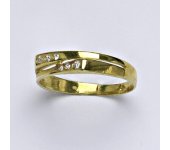 Prsten je vyrobený ze žlutého zlata, je zdobený syntetickými zirkony. Materiál je zlato 14 karátů 585/1000.