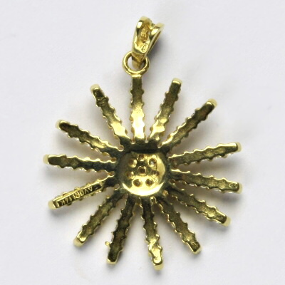 Přívěsek je vyrobený ze žlutého zlata o ryzosti 14 karátů 585/1000. Přívěšek je zdobený syntetickými zirkony. Orientační váha přívěsku je 3,79 g. Celková výška přívěsku včetně očka je 33 mm.