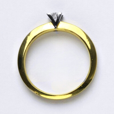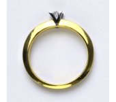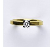 Prsten je vyroben ze žlutého zlata. Materiál je zlato 750/1000. Orientační váha prstenu je 5,52 g. Skladem máme prsten ve velikosti 56. Prsten je zdoben diamantem o průměru 3,8 mm kvality Si/H a má cca 0,20 karátů.