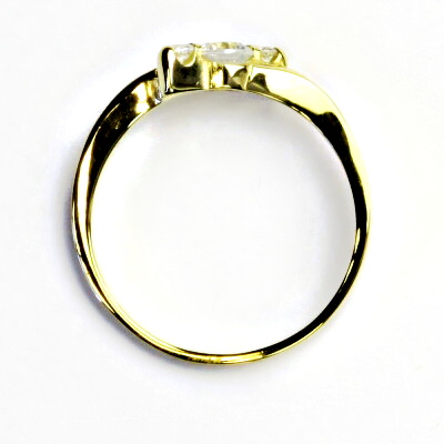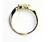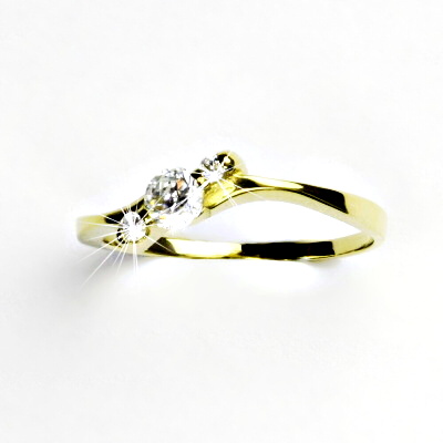 Prstýnek ze žlutého zlata s čirými zirkony o průměru 1,85 mm a 4 mm. Materiál je zlato 585/1000. Orientační váha prstenu ve velikosti 55 je 1,89 g. Je vhodný i jako zásnubní prsten.