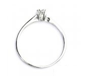 Prstýnek z bílého zlata je zdoben čirým zirkonem o průměru 3 mm. Materiál je zlato 585/1000. Orientační váha prstenu ve velikosti 54 je 1,12 g.