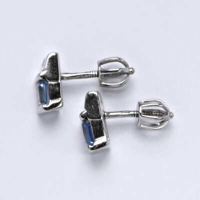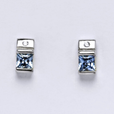 Náušnice jsou vyrobené z bílého zlata 14 karátů 585/1000, zdobené syntetickým akvamarínem a zirkonem. Celková velikost náušnice je 9 mm. Zapínání na náušnicích je šroubek. Při více kusech skladem je váha šperku orientační.