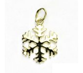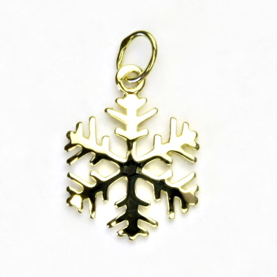 Zlatý přívěsek sněhová vločka. Materiál je žluté zlato 585/1000. Rozměr přívěsku je 22 mm včetně očka na výšku a 14 mm na šířku. Orientační váha přívěsku je 1,57 g.