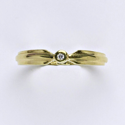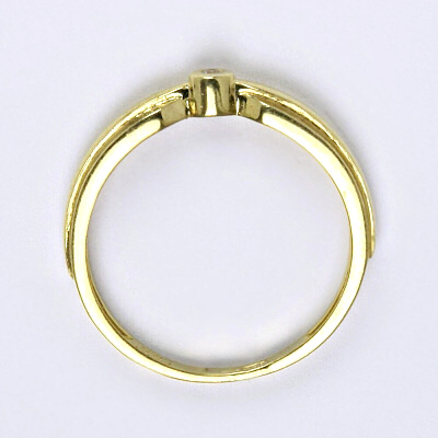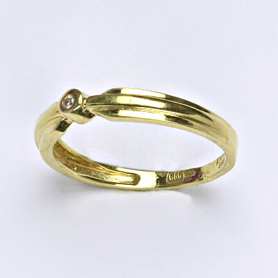 Prsten je vyrobený ze žlutého zlata, zdobený čirým syntetickým zirkonem 1,5 mm. Materiál je zlato 14 karátů 585/1000.