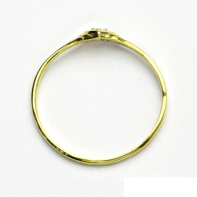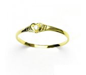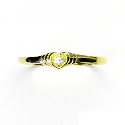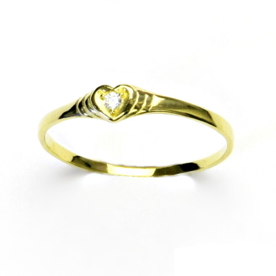 Zlatý prsten ze žlutého zlata s čirým zirkonem. Prstýnek má na sobě zdobení ve tvaru srdíčka s čirým zirkonem. Průměr zirkonu je 1,70 mm. Materiál prstýnku je zlato 585/1000. Orientační váha prstenu ve velikosti 55 je cca 1,6 g.