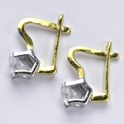 Náušnice jsou vyrobeny jako kombinace bílé a žluté zlato 14 karátů 585/1000, zdobené syntetickým zirkonem. Zapínání na náušnicích je na patent. Celková velikost náušnice je 15 mm, velikost zirkonu je 5 x 5 mm.