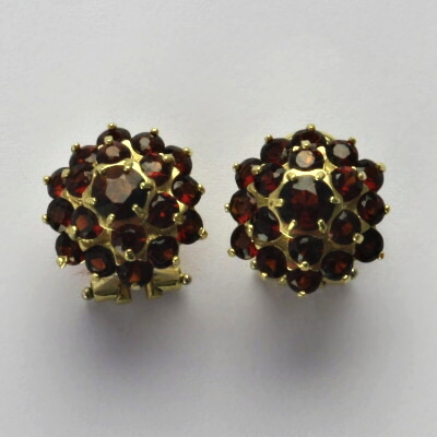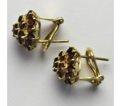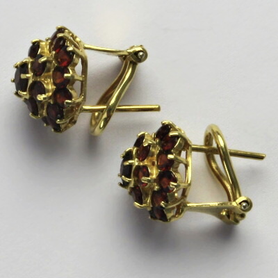 Náušnice jsou vyrobeny ze žlutého zlata o ryzosti 14 karátů 585/1000. Orientační váha je 6,86 g. Náušnice jsou zdobeny přírodními granáty. Celková výška náušnice je 13 mm. Zapínaní náušnice je na klapku.
