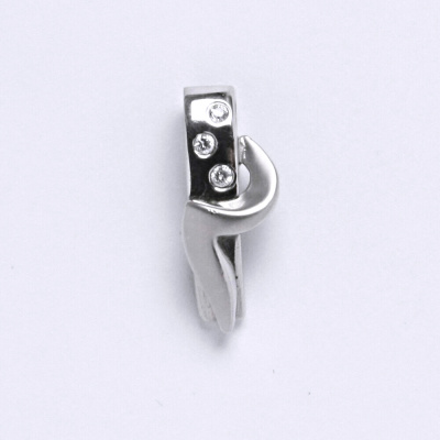 přívešek bílé zlato, zdoben syntetickými zirkony a pískováním (matováním), celková velikost 18 mm