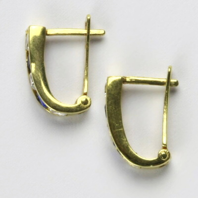 Náušnice jsou vyrobeny ze žlutého zlata o ryzosti 14 karátů 585/1000. Náušnice jsou zdobeny syntetickými zirkony a spinely. Orientační váha je 2,57 g. Zapínání je na klapku. Rozměr náušnice na výšku je 16 mm.
