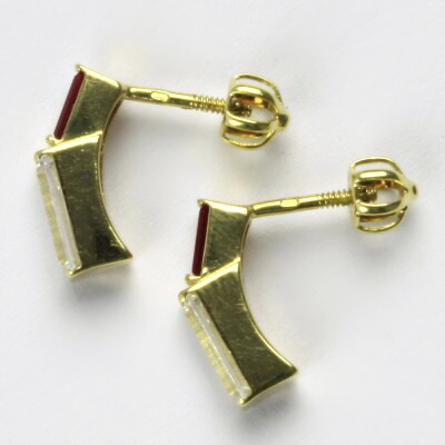 Náušnice jsou vyrobeny ze žlutého zlata o ryzosti 14 karátů 585/1000. Náušnice jsou zdobeny syntetickými zirkony. Orientační váha je 2,94 g. Zapínání je na šroubek. Rozměr náušnice na výšku je 14 mm.