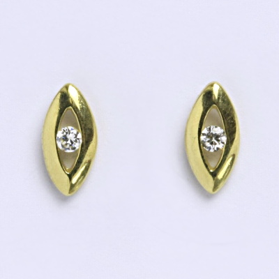 Náušnice vyrobené ze žlutého zlata 585/1000 zdobené syntetickým zirkonem. Zapínání na náušnicích je šroubek. Velikost náušnice je 11 mm. Při více kusech skladem, je váha jen orientační.