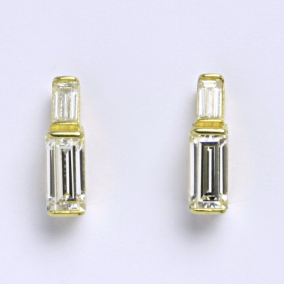 Náušnice vyrobené ze žlutého zlata 585/1000 zdobené syntetickým zirkonem. Zapínání na náušnicích je šroubek. Velikost náušnice je 14 mm. Při více kusech skladem, je váha jen orientační