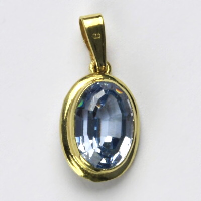 Přívěsek je vyrobený ze žlutého zlata o ryzosti 14 karátů 585/1000. Přívěšek je zdobený modrým kamenem. Orientační váha přívěsku je 3,03 g. Celková výška přívěsku včetně očka je 26 mm.