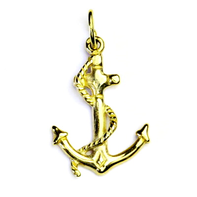 Přívěsek ze žlutého zlata ve tvaru kotvy. Materiál je zlato 585/1000. Orientační váha přívěsku je 1,67 g. Rozměř přívěsku je 25 mm včetně úchytu na výšku a 15 mm na šířku.