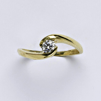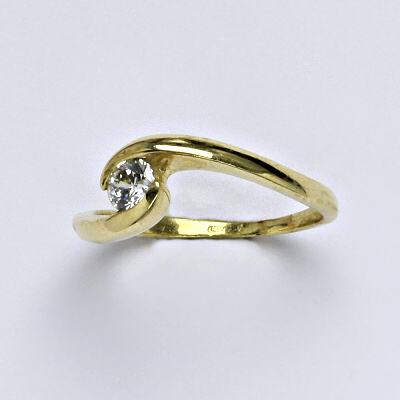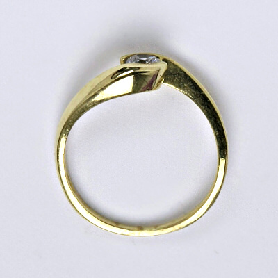 Prsten je vyrobený ze žlutého zlata, je zdobený syntetickým zirkonem 3 mm. Materiál je zlato 14 karátů 585/1000.