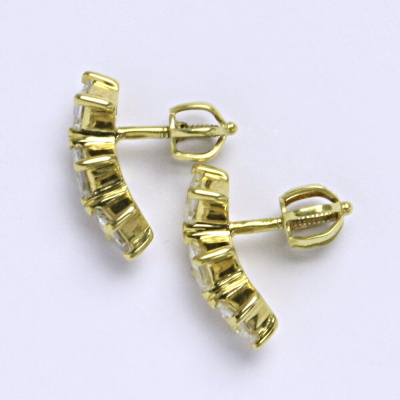 Náušnice vyrobené ze žlutého zlata 585/1000 zdobené syntetickým zirkonem. Zapínání na náušnicích je šroubek. Velikost náušnice je 14 mm. Při více kusech skladem, je váha jen orientační.