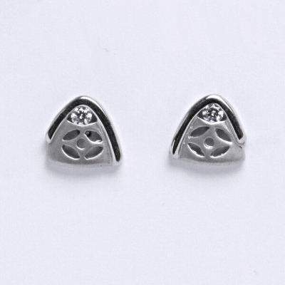 naušnice bílé zlato, zdobeny syntetickým zirkonem a pískováním (matováním), průměr naušnice 8 mm