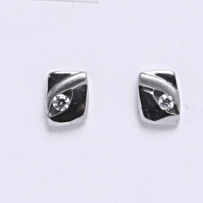 naušnice bílé zlato, zdobeny syntetickým zirkonem a pískováním (matováním), velikost 8 x 6 mm