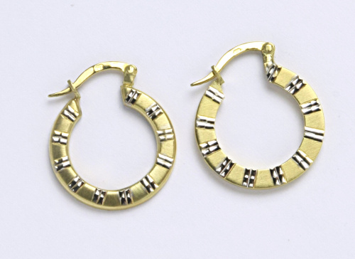 naušnice žluté zlato zdobeno bílým, průměr 20 mm