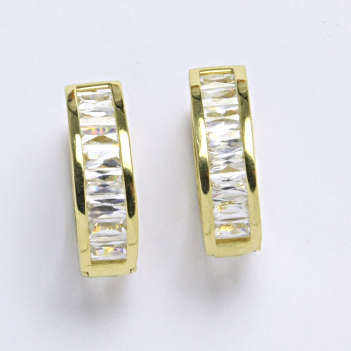 naušnice žluté zlato zdobeny syntetickými zirkony, velikost 18 x 15 mm