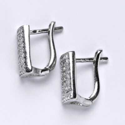 Náušnice jsou vyrobené z bílého zlata 14 karátů 585/1000, zdobené syntetickým zirkonem. Celková velikost náušnice je 14 mm. Zapínání na náušnicích je pasivní patent.