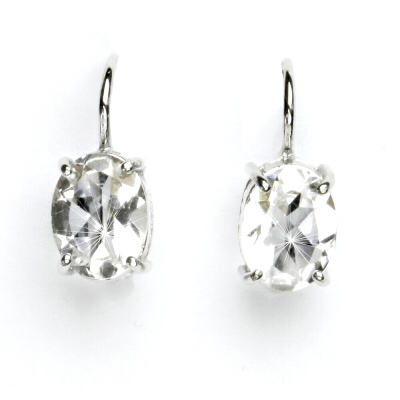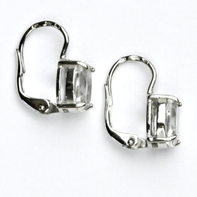 Náušnice z bílého zlata jsou zdobeny přírodním křišťálem o rozměru 9x7 mm. Materiál je zlato 585/1000. Orientační váha náušnic je 2,84 g. Celková výška náušnice je 17 mm.