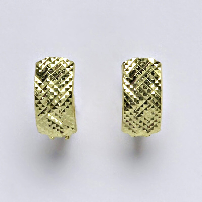 Zlaté náušnice, náušničky, jsou vyrobené ze žlutého zlata. Zapínání na náušnicích je patent. Materiál je zlato 14 karátů 585/1000. Celková velikost náušnice je 12 mm.