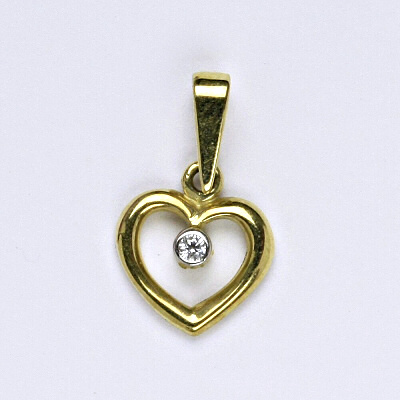 Přívěsek je vyrobený ze žlutého zlata 14 karátů 585/1000. Celková velikost přívěsku včetně ouška je 19 mm.
