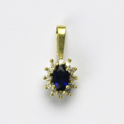 Přívěsek je vyrobený ze žlutého zlata o ryzosti 14 karátů 585/1000. Přívěšek je zdoben spinelem a čirými zirkony. Orientační váha přívěsku je 1,40 g. Celková výška přívěsku včetně očka je 17 mm.