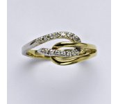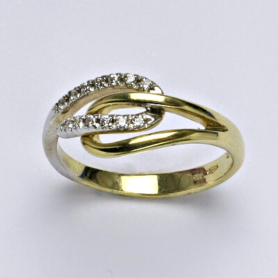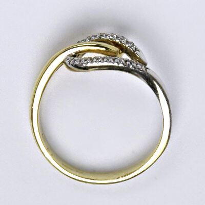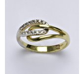 Prsten je vyrobený ze žlutého zlata, je zdobený syntetickými zirkony. Materiál je zlato 14 karátů 585/1000.