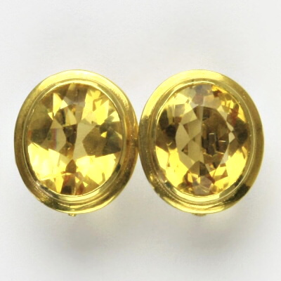 Náušnice ze žlutého zlata s přírodním citrínem. Rozměr kamene je 11x9 mm. Materiál je zlato o ryzosti 750/1000.Orientační váha náušnic je 5,70 g.