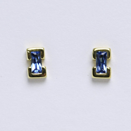 Náušnice ze žlutého zlata jsou osazeny syntetickým akvamarínem. Velikost náušnice je 7 mm. Orientační váha je 1,68 g.