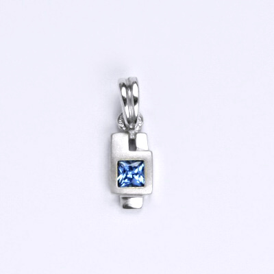 Přívěsek je vyrobený z bílého zlata 14 karátů 585/1000, zdobený syntetickým akvamarínem. Celková velikost přívěsku včetně ouška je 15 mm. Při více kusech skladem je váha orientační.