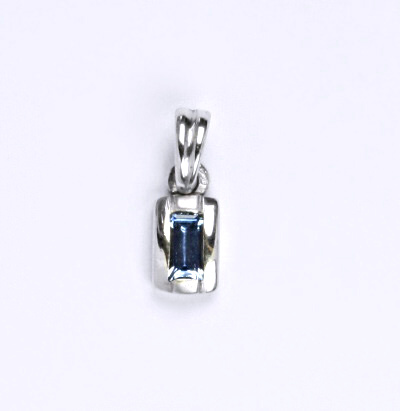 Přívěsek je vyrobený z bílého zlata 14 karátů 585/1000, zdobený syntetickým akvamarínem. Celková velikost přívěsku včetně ouška je 12 mm. Při více kusech skladem je váha orientační.