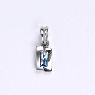 Přívěsek vyrobený z bílého zlata 14 karátů 585/1000, zdobený syntetickým akvamarínem. Celková velikost přívěsku včetně ouška je 15 mm. Při více kusech skladem je váha orientační.