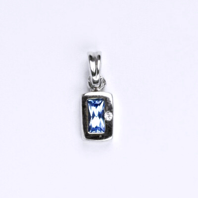 Přívěsek je vyrobený z bílého zlata 14 karátů 585/1000, zdobený syntetickým akvamarínem. Celková velikost přívěsku včetně ouška je 14 mm. Při více kusech skladem je váha orientační.