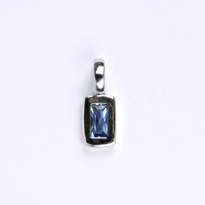 Přívěsek je vyrobený z bílého zlata 14 karátů 585/1000, zdobený syntetickým akvamarínem. Celková velikost přívěsku včetně ouška je 12 mm. Při více kusech skladem je váha orientační.